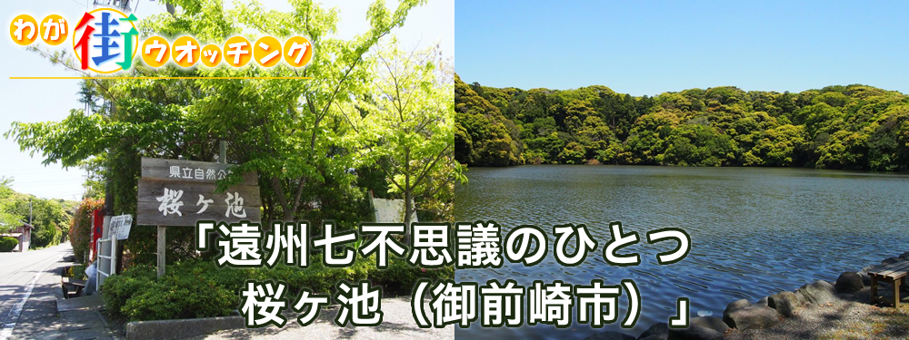 御前崎半島県立自然公園の一環にあり、県の自然森百選にも選ばれている「桜ケ池(さくらがいけ)」。約2万年前にできた砂丘堰止湖で、広さは約2万平方メートルにのぼる。平安時代末期に比叡山の高僧、皇円が苦しむ人々を救済するため当時一番長生きすると信じられた龍に姿をかえ桜ケ池に鎮まられた。