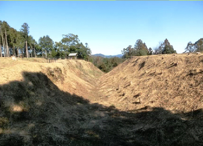 諏訪原城は、巨大な空堀に囲まれています。最も大きな堀は、深さ約8m、最大幅約25mであり、人の手で掘ったとは思えないほどの大きさです。