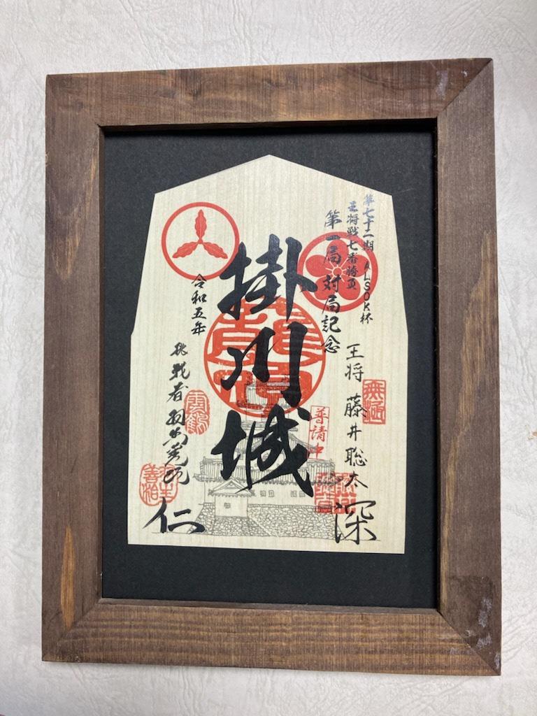 王将戦に合わせて掛川城の指定管理者(掛川城管理運営共同体)が販売したのが、対局する藤井王将・羽生九段の署名が刻まれた掛川城御城印。1枚1300円にての販売でしたが、売場に行列ができるほどの盛況となり、限定3000枚が即日完売したとのことです。