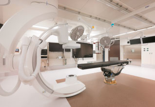 | ハイブリッドER 救急患者に対してCT、血管造影やX線撮影、手術が可能で、 搬送されてきた救急患者を効率的に治療できる施設 | ハイブリッドOR 手術台と心・血管造影っ装置を備えた手術室。 高度な心臓血管外科手術や脳外科手術、整形外科手術が可能 |