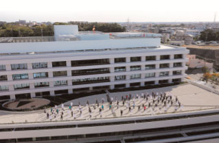 | 新棟南側 背後の施設は左から3号館、2号館、1号館 |