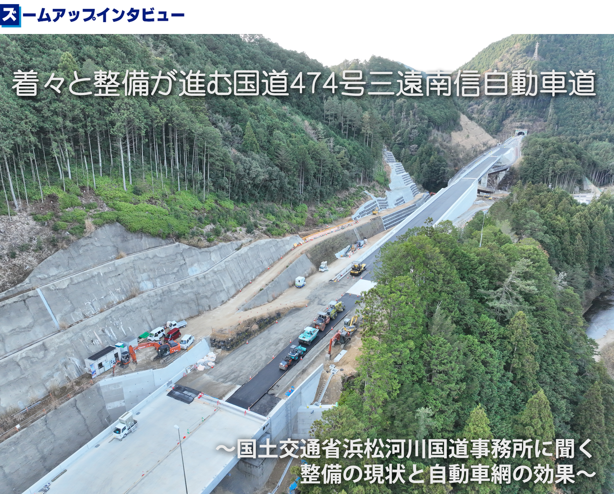 長野県飯田市の中央自動車道を起点として、静岡県浜松市浜名区引佐町に至る延長約100kmの高規格幹線道路「三遠南信自動車道」の工事が進められている。三遠南信地域の交流促進、連携強化および奥三河・北遠州・南信州地域への高速サービスの提供、災害に強い道路網の構築、地域医療サービスの向上とともに、これら地域の秩序ある開発、発展に寄与する重要な道路として注目が集まっている。そこで、同事業を推進する国土交通省中部地方整備局浜松河川国道事務所副所長(道路)の山本進一氏と同建設専門官の喜畑友美氏に話を聞いた。